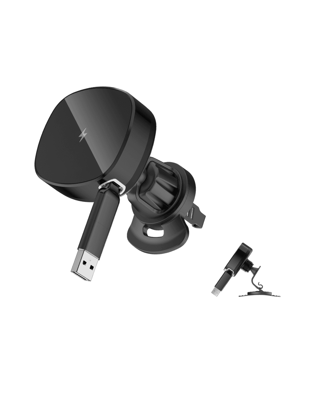 Convenient USB-C/Type-C Cable: Equipped with a built-in retractable Type-C data cable, this car mount charger eliminates the need for additional purchases. Get a 2-in-1 function of a car phone holder, wireless charging mount, and retractable USB-A/Type-C cable in one magnetic charging car holder.