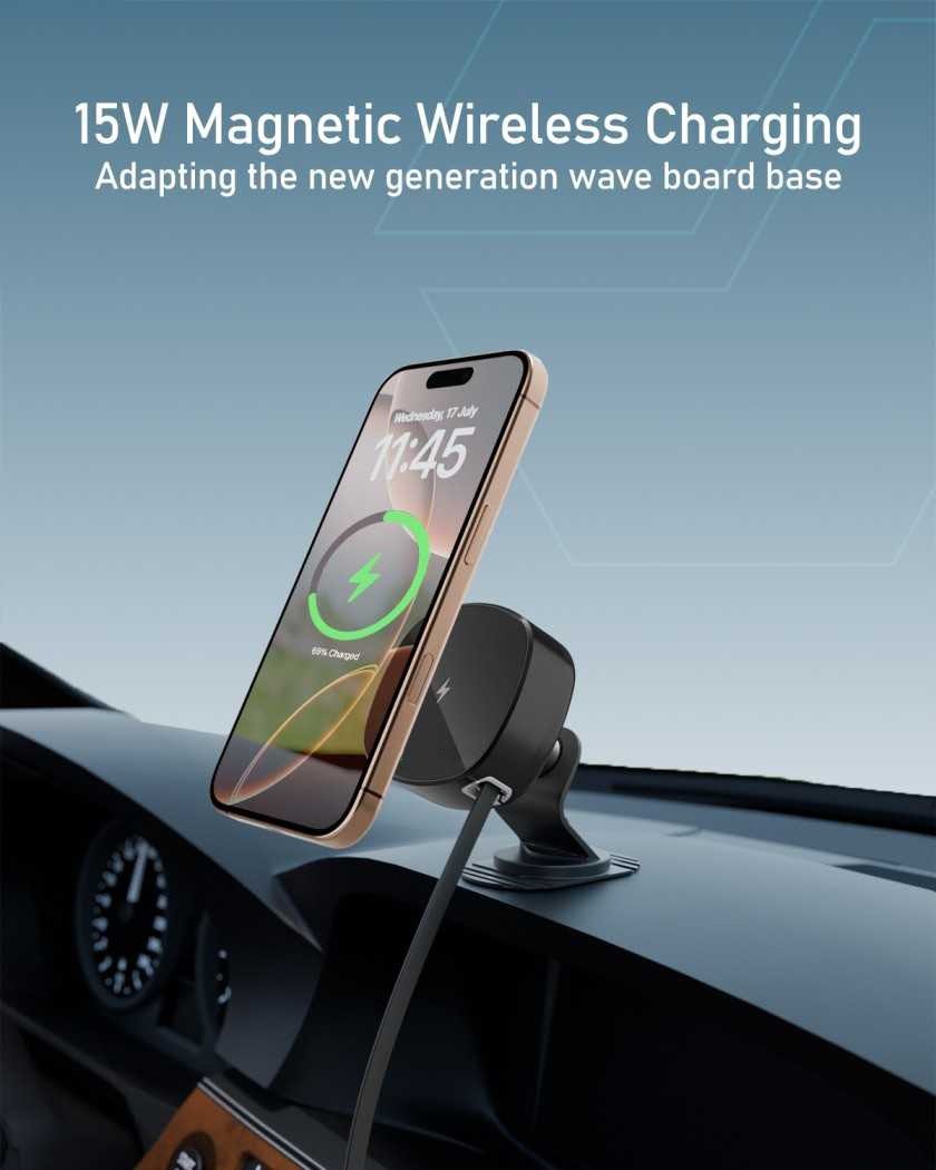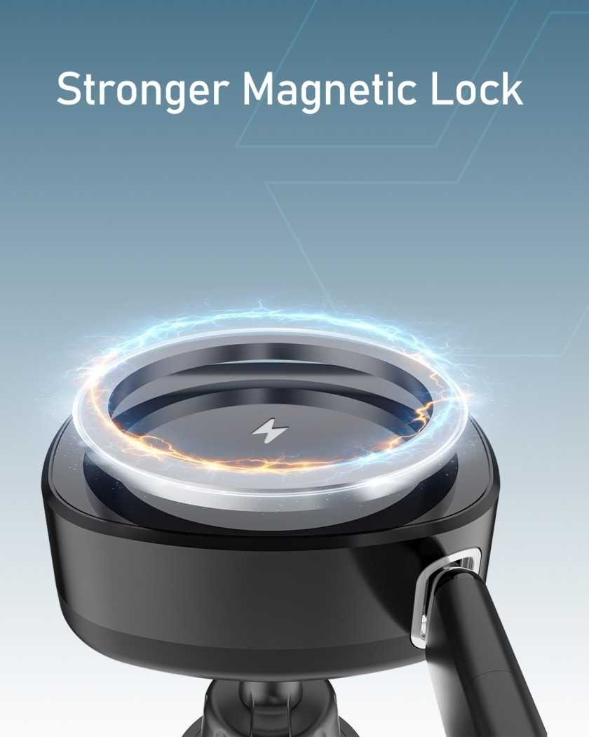 Flexible Rotation with Strong Magnets: Featuring 18 permanent magnets for higher precision and better magnetic performance, this wireless charger phone holder can easily rotate and securely hold your phone in place. The upgraded magnet system ensures stability while driving.