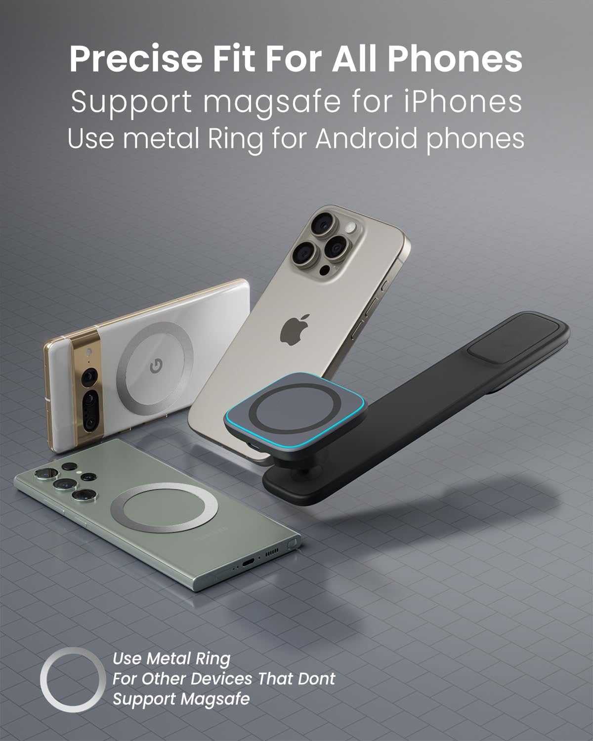 Wide Compatibility: The Flexi-Grip magnetic phone holder fits perfectly with MagSafe iPhone 12, 13, 14, 15 series and all MagSafe cases, ensuring stable magnetic attraction.
