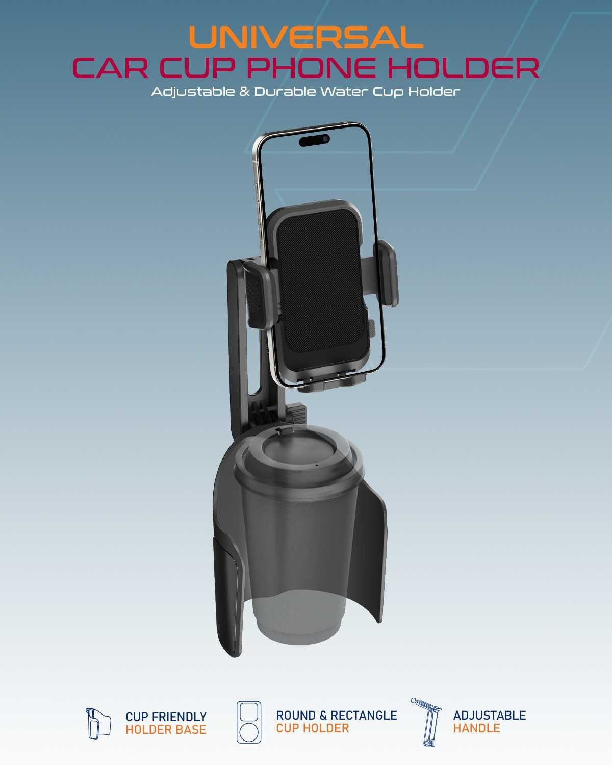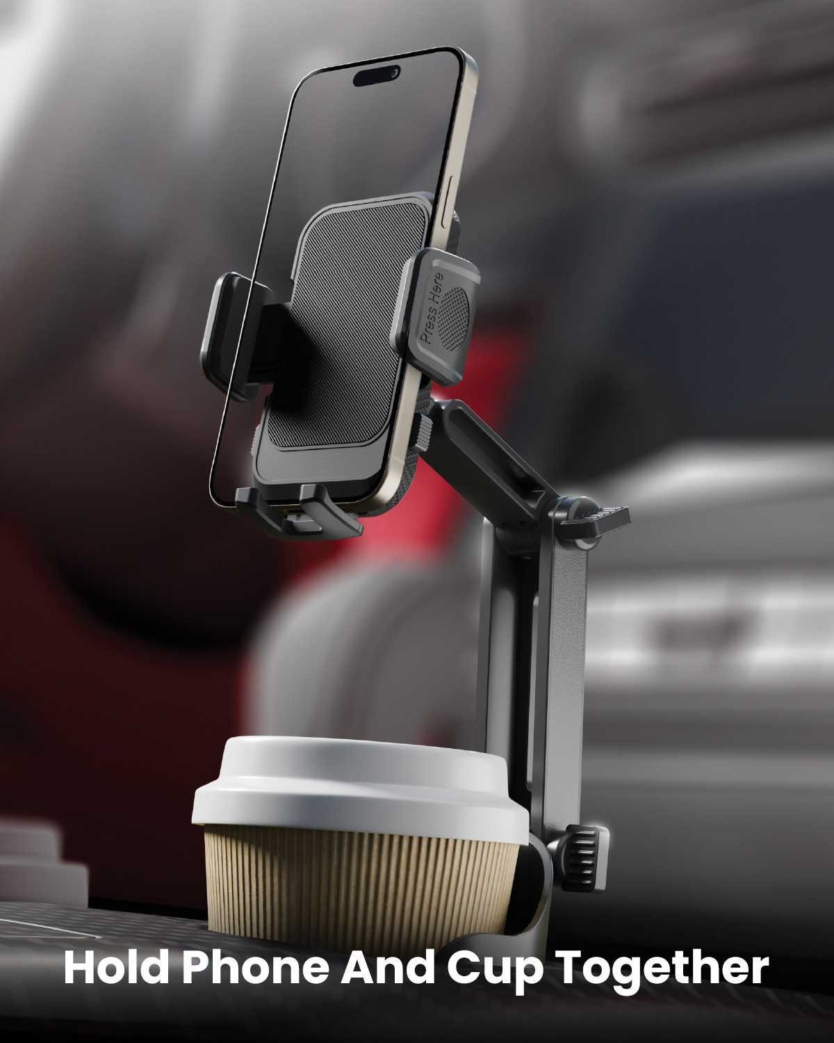 • 2-in-1 Functionality: Combines phone mount with cup holder for convenience.